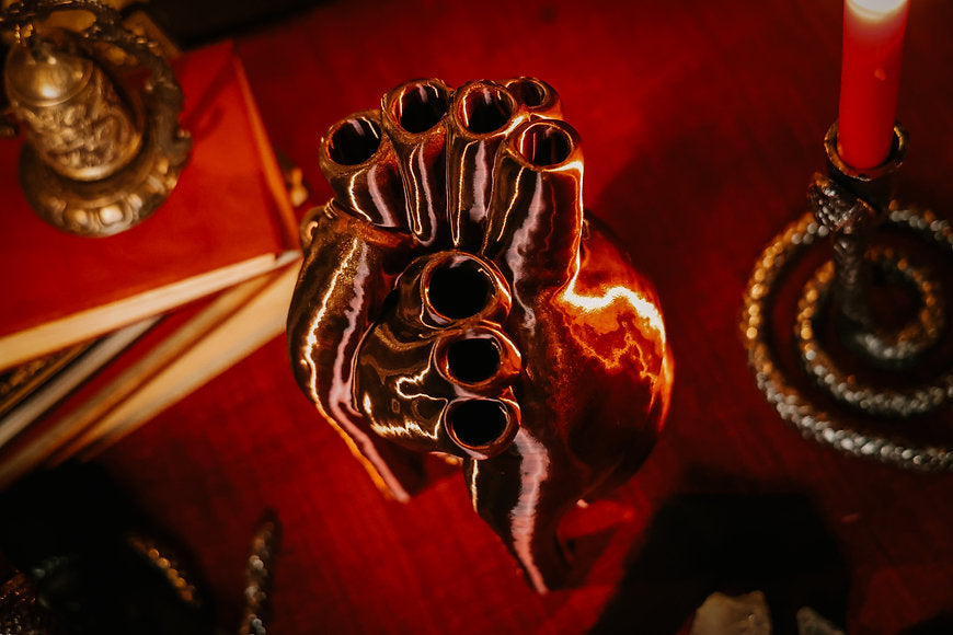 Introducing our unique Anatomical Heart Vase, a must-have for those who love gothic and alternative homeware. This vase is 3D printed from PLA and comes in three striking colour options and is available in two sizes. This vase is perfect for displaying your favourite flowers or as an edgy centrepiece. The perfect addition to any home, the Anatomical Heart Vase is a great gift for gothic Valentines or anyone who loves unique and alternative décor. Fill it with your favourite flowers or leave it empty as a statement piece.